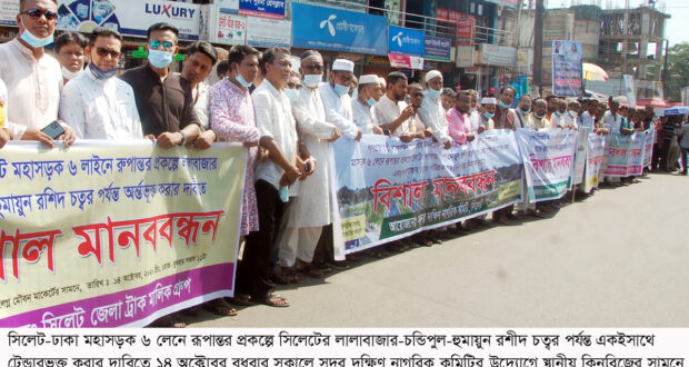 Read More »সিলেট নিউজ বিডি ডেস্কঃ সিলেট-ঢাকা মহাসড়ক ৬ লেনে রূপান্তর প্রকল্পে সিলেটের লালাবাজার-চন্ডিপুল-হুমায়ুন রশীদ চত্বর পর্যন্ত একইসাথে টেন্ডারভূক্ত করার দাবিতে সদর ...
