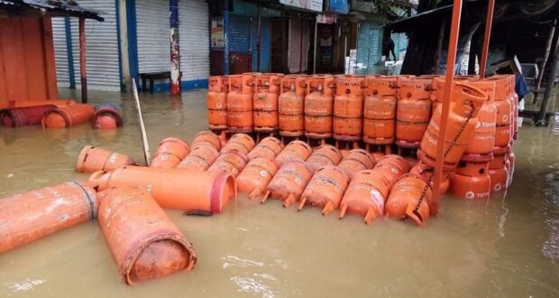 মস্তফা উদ্দিন,বড়লেখাঃ প্রায় সারারাতের টানা বৃষ্টি আর উজান থেকে নেমে আসা পাহাড়ি ঢলে মৌলভীবাজারে বড়লেখা পৌরশহরের বেশিরভাগ এলাকা পানিতে সয়লাব হয়ে যাওয়ায় চলাচলে সীমাহীন দুর্ভোগের সৃষ্টি হয়। শহরের অনেক এলাকার দোকানপাট ও ব্যাবসায়ীদের গোদামে পানি ঢুকে ব্যাপক ক্ষয়ক্ষতি হয়েছে বলে জানিয়েছেন ব্যবসায়ীরা। এদিকে রোববার ভোরে প্লাবিত এলাকা পরিদর্শন করেন পৌরমেয়র আবু ইমাম মো. কামরান চৌধুরী।