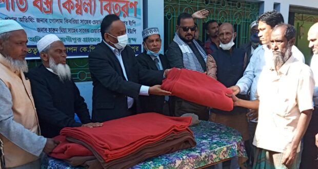 নিজস্ব প্রতিবেদকঃ সিলেটের ওসমানীনগর উপজেলার উমরপুর ইউনিয়ন এর আল-হাসান ডিপার্টমেন্টাল স্টোরের ও আপন কেপি ব্রাদার্স সার্বিক তত্ত্বাবধানে হাজী আছদ্দর মিয়ার পরিবারের পক্ষ থেকে অসহায় দারিদ্র্য শীতার্ত মানুষের মধ্যে কম্বল বিতরণ করা হয়েছে। শনিবার ১২ ঘটিকায় উমরপুর ইউনিয়ন খুজগিপুর গ্রামের আছদ্দর মিয়ার নিজ বাড়িতে আনুষ্ঠানিক ভাবে শীতবস্র বিতরণ করা হয়েছে। উপজেলার উমরপুর ইউনিয়ন এর বিভিন্ন গ্রামের অসহায় শীতার্ত মানুষের মধ্যে ৪০০ কম্বল বিতরণ করা হয়। এতে প্রধান অতিথি হিসেবে উপস্থিত ছিলেন উমরপুর ইউনিয়ন পরিষদের চেয়ারম্যান গোলাম কবরিয়া,বালাগন্জ ও ওসমানীনগর উপজেলা সাবেক চেয়ারম্যান আব্দাল মিয়া,গোয়ালা বাজার ইউনিয়ন এর সাবেক চেয়ারম্যান ও আওয়ামী লীগের সহ সভাপতি হারুন মিয়া, ওসমানীনগর উপজেলা ভাইস চেয়ারম্যান গোয়াস মিয়া,কৃষক লীগের নেতা মোস্তাক আহমেদ, যুবলীগ নেতা মনির মিয়া,খুজগীপুর মানউল্লা বহুমুখী উচ্চবিদ্যালয়ের সভাপতি আবুল হুসেইন,