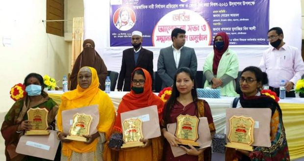 বৃহস্পতিবার (৯ ডিসেম্বর) উপজেলা পরিষদ মিলনায়তনে উপজেলা প্রশাসন ও মহিলা বিষয়ক কর্মকতার কার্যালয় আয়োজিত আলোচনা সভা ও সম্মাননা অনুষ্ঠানে তাঁদের ২০২১ সালের জয়িতা পুরস্কারের সম্মাননা স্মারক, সনদ ও পুরস্কার তুলে দেওয়া হয়।