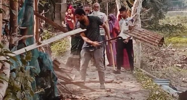 অভিযোগ ও সরেজমিনে জানা গেছে, দুবাই প্রবাসী জমির উদ্দিনের পরিবারের সাথে প্রতিবেশি বাহার উদ্দিন ও তার ছেলেদের সাথে রাস্তার সীমানা নিয়ে মনমালিন্য চলছিল। কয়েক দিন ধরে প্রবাসীর স্ত্রী আফসা বেগম রাস্তা সংলগ্ন বসত বাড়িতে টিনসেট ঘর নির্মাণ করছেন। সোমবার মিস্ত্রিরা ঘরের নির্মাণ কাজ করাকালিন প্রতিপক্ষ দেশিয় অস্ত্রসস্ত্র নিয়ে সংঘবদ্ধভাবে কাজে বাধা দেয়। এসময় আফসা বেগম, জ্যা মান্না বেগম ও প্রবাসী জমির উদ্দিনের বড়বোন ফাতেমা বেগম এগিয়ে গেলে তাদের ওপর হামলা চালায়। খবর পেয়ে স্থানীয় ইউপি চেয়ারম্যান গ্রাম পুলিশ পাঠান। গ্রাম পুলিশের বাধা-নিষেধ উপেক্ষা করে বাহার উদ্দিন গংরা হামলা চালায়। এতে প্রবাসীর স্ত্রী আফসা বেগম, মান্না বেগম, ননদ ফাতেমা বেগম, মিস্ত্রী সফিক উদ্দিন, আল আমিন, নিজাম উদ্দিন আহত হন। এসময় প্রতিপক্ষের লোকজন নির্মিতব্য ঘর ভাংচুর ও ব্যাপক গাছ কেটে ফেলে। এঘটনায় আহত আফসা বেগম প্রতিপক্ষের বাহার উদ্দিনকে প্রধান আসামী করে চার জনের নাম উল্লেখ ও ৪/৫ জনকে অজ্ঞাত আসামী থানায় অভিযোগ দিয়েছেন।
