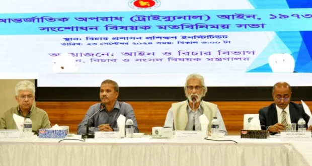 শিল্প, গৃহায়ন ও গণপূর্ত মন্ত্রণালয় বিষয়ক উপদেষ্টা আদিলুর রহমান খান বলেন, সবদিক বিবেচনা করে সম্মিলিতভাবে আন্তর্জাতিক অপরাধ ট্রাইব্যুনালে বিচারের সিদ্ধান্ত নেওয়া হয়েছে। আইনে যেসব দুর্বলতা রয়েছে সবার মতামত নিয়ে তা সংশোধনের সিদ্ধান্ত নেওয়া হয়েছে।